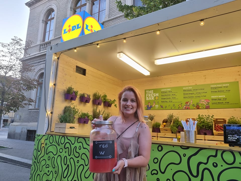 Cei care au ajuns la Cluj-Napoca în perioada 9-15 august au putut achiziționa sucuri și gustări proaspete pregătite din fructele și legumele din Piața Lidl, la cele 2 fresh baruri, de pe Strada Kogălniceanu și din zona Cetățuie.
