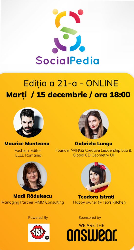 Te așteptăm pe 15 decembrie 2020, la ora 18:00, live pe ZOOM pentru o ediție despre Influencer Marketing, în care discutăm despre importanța campaniilor de Influencer Marketing, atât din perspectiva specialistului, cât și din perspectiva creatorului de conținut. Apoi, învățăm cum comunicăm convingător, ce înseamnă Smart Leadership și cum ne adaptăm din punct de vedere profesional acestei situații neobișnuite pe care o traversăm.