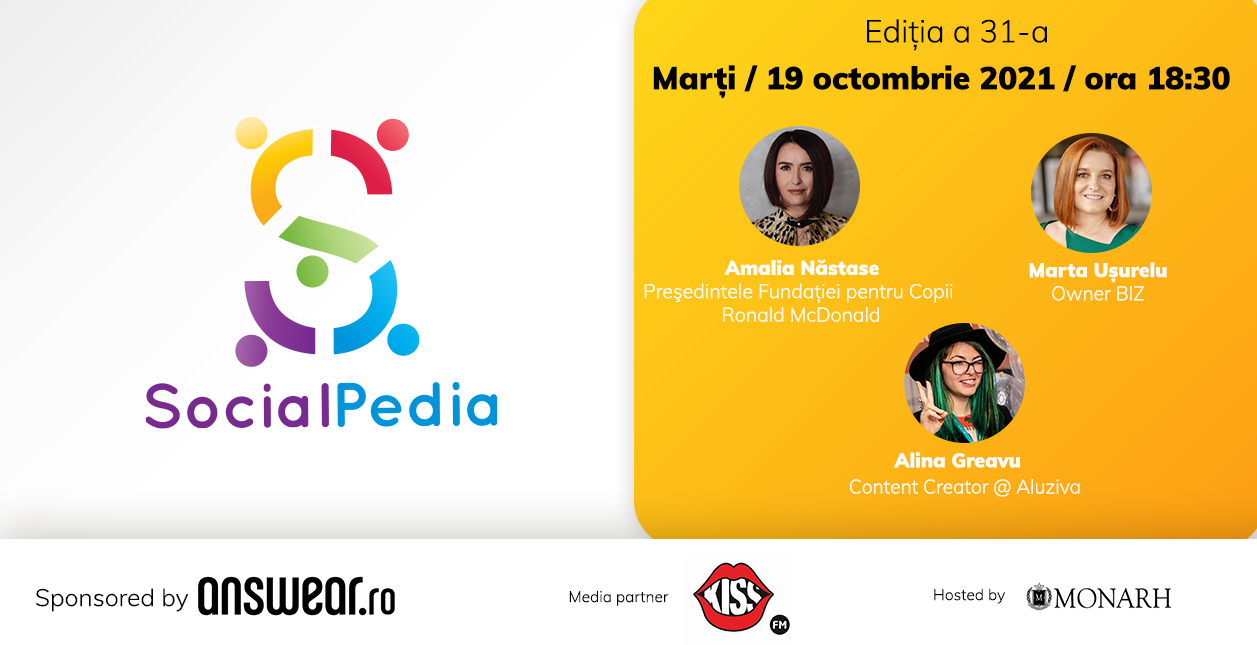 Așa cum am promis, am revenit cu ideile principale de la evenimentul SocialPedia 31, sponsored by ANSWEAR. Nu înainte de a vă îndemna să notați în calendar data de 16 noiembrie 2021, când ne vom revedea la SocialPedia 32. Noi abia așteptăm!